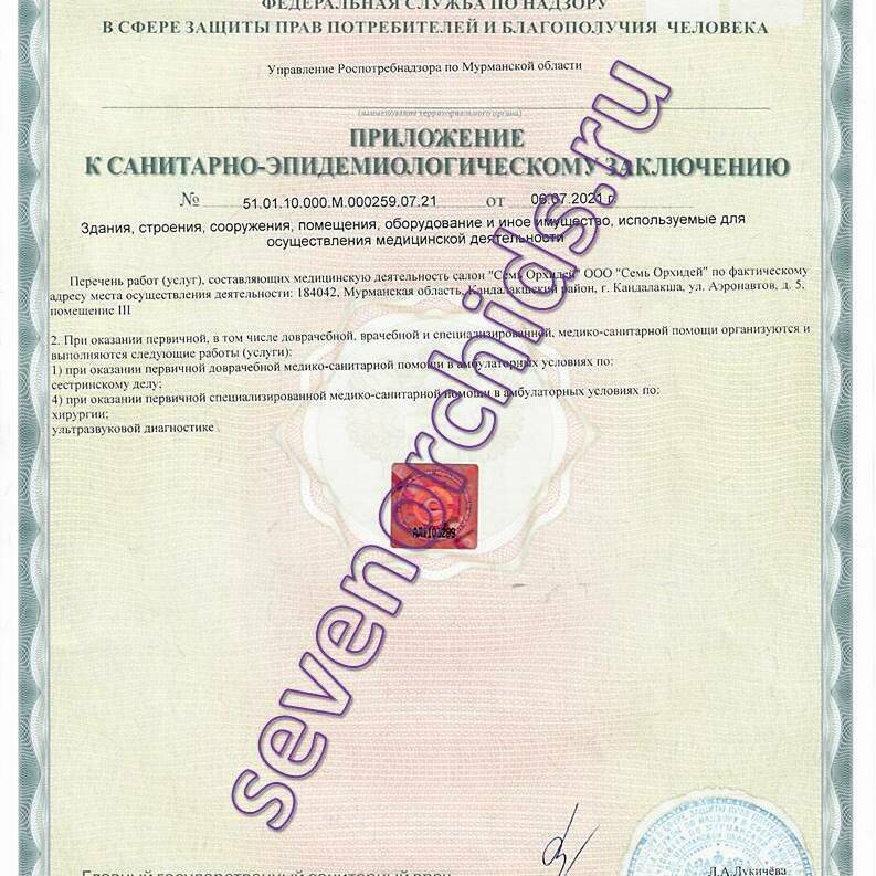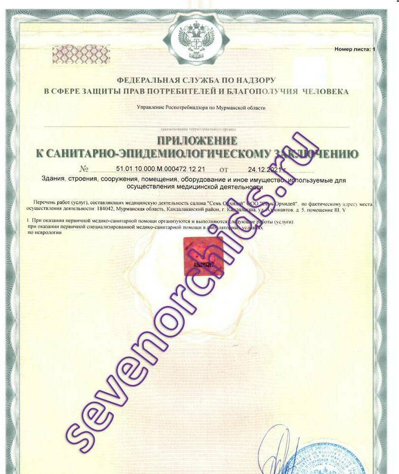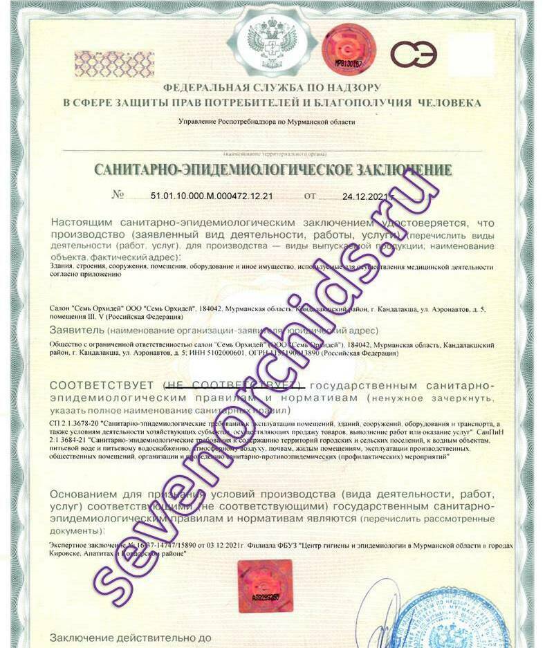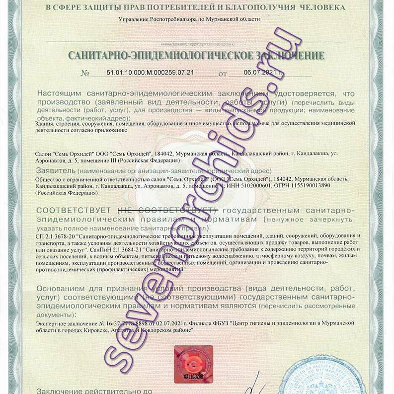 Санитарно-эпидемиологическое заключение Федеральной службы по надзору в сфере защиты прав потребителей и благополучия человека, Управления Роспотребназора по Мурманской области